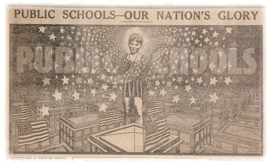 great and powerful today. Many are the accomplishments of human genius that built railroads across the continent, a canal from ocean to ocean, gigantic factories, airships, submarines. But the greatest of all national achievements is THE AMERICAN PUBLIC SCHOOL. It is greatest in PRESENT good, greatest in FUTURE power. Work for the schools and you work for the nation, work for education, and you work against superstition and all the hatred and vice based on ignorance. |